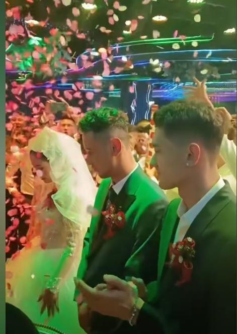 婚礼现场,聚光灯下,两兄弟紧紧相拥,久久不愿松开。
